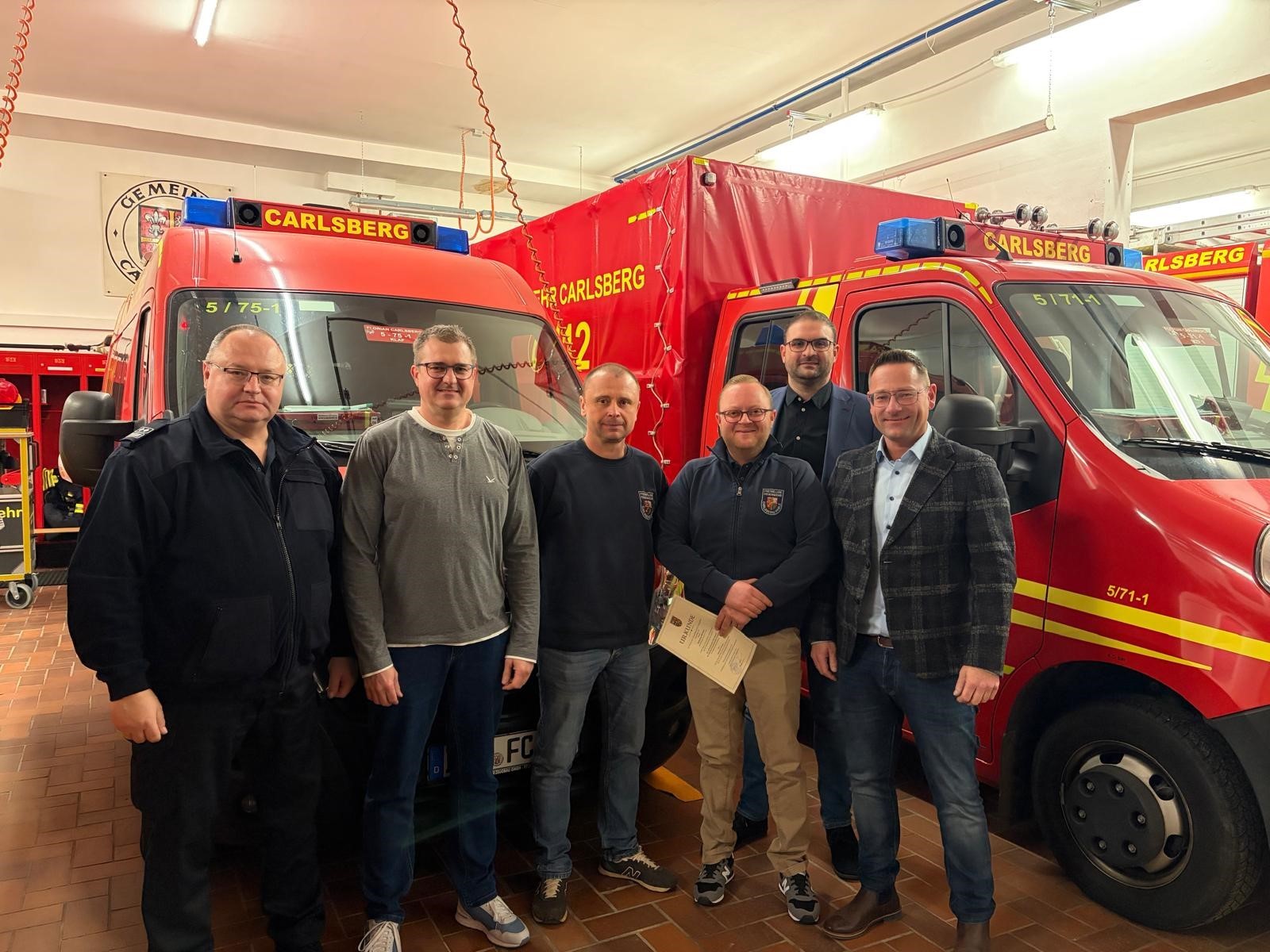 Die Feuerwehr Carlsberg hat die seit einiger Zeit nicht besetzte Stelle des stellvertretenden Wehrführers jetzt neu vergeben können. Bei der Wahl zum stellvertretenden Wehrführer konnte Sebastian Schmitt die Mehrheit der Stimmen der Wehrleute der Freiwilligen Feuerwehr Carlsberg auf sich vereinen. Der Brandmeister übernimmt damit neue Aufgaben und wird demnächst auch einen Lehrgang als Zugführer absolvieren.
