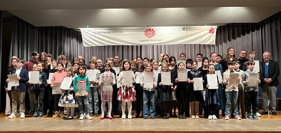 Landrat Hans-Ulrich Ihlenfeld übergab allen 26 Preisträgerinnen und Preisträgern aus dem Landkreis Bad Dürkheim ihre Urkunden und gratulierte herzlich zu diesem Erfolg. 17 von ihnen konnten sogar einen ersten Preis ergattern. Insgesamt haben 96 junge Menschen aus verschiedenen Musikschulen am Regionalwettbewerb Vorderpfalz teilgenommen. 30 Mal gab es erste Preise mit Weiterleitung zum Landeswettbewerb, 33 Mal den ersten Preis und 16 Mal den zweiten Preis. Für die Teilnehmer aus dem Landkreis Bad Dürkheim gab es neun erste Preise mit Weiterleitung zum Landeswettbewerb, acht erste Preise und neun zweite Preise.