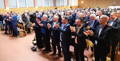 Mit stehendem Applaus wurde Frank Rüttger als Bürgermeister der Verbandsgemeinde Leiningerland von den Bürgern und Mandatsträgern verabschiedet. FOTO: VGL/Schifferstein
