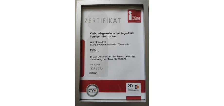 Nach der Erfüllung dieser Grundvoraussetzungen folgte ein umfassender Qualitätscheck vor Ort in Bockenheim. Genau 40 Kriterien stehen auf der Prüfliste: So lassen sich die Außenanlage und die räumliche Ausstattung der Tourist-Information detailliert analysieren. Beim Informationsangebot wird überprüft, ob es lokale oder regionale Tourist-Cards, ÖPNV-Angebote für Touristen gibt und ob die Gäste wichtige Informationen zu Sehenswürdigkeiten und Veranstaltungen erhalten. Die Prüfer kontrollieren auch den personellen Service, also ob beispielsweise die Betreuung ausländischer Gäste durch die ständige Präsenz von mindestens einer Person für Auskünfte in englischer Sprache gewährleistet ist. Kristina Valerius und Tatjana Metzger, Mitarbeiterinnen der Tourist-Information Leiningerland, freuen sich über das tolle Ergebnis mit der Note 2 des Prüfverfahrens: „Wir sind stolz, die Qualitätskontrolle erfolgreich gemeistert und uns in den unangekündigten Tests so gut bewährt zu haben. Anhand der vom DTV erhaltenen Analyse werden wir daran arbeiten, unsere Kompetenz weiter auszubauen und so noch mehr Kundenzufriedenheit zu erreichen.“ Die Tourist-Information Leiningerland darf jetzt weitere drei Jahre mit der i-Marke werben. Dann steht eine erneute, umfangreiche Überprüfung an.