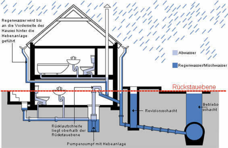 Grundsätzlich ist Abwasser, das unterhalb der Rückstauebene anfällt, über eine Abwasserhebeanlage der öffentlichen Kanalisation zuzuführen. Dies gilt praktisch für alle unterkellerten Gebäude, die im Kellergeschoß z. B. eine Toilette oder Dusche haben.