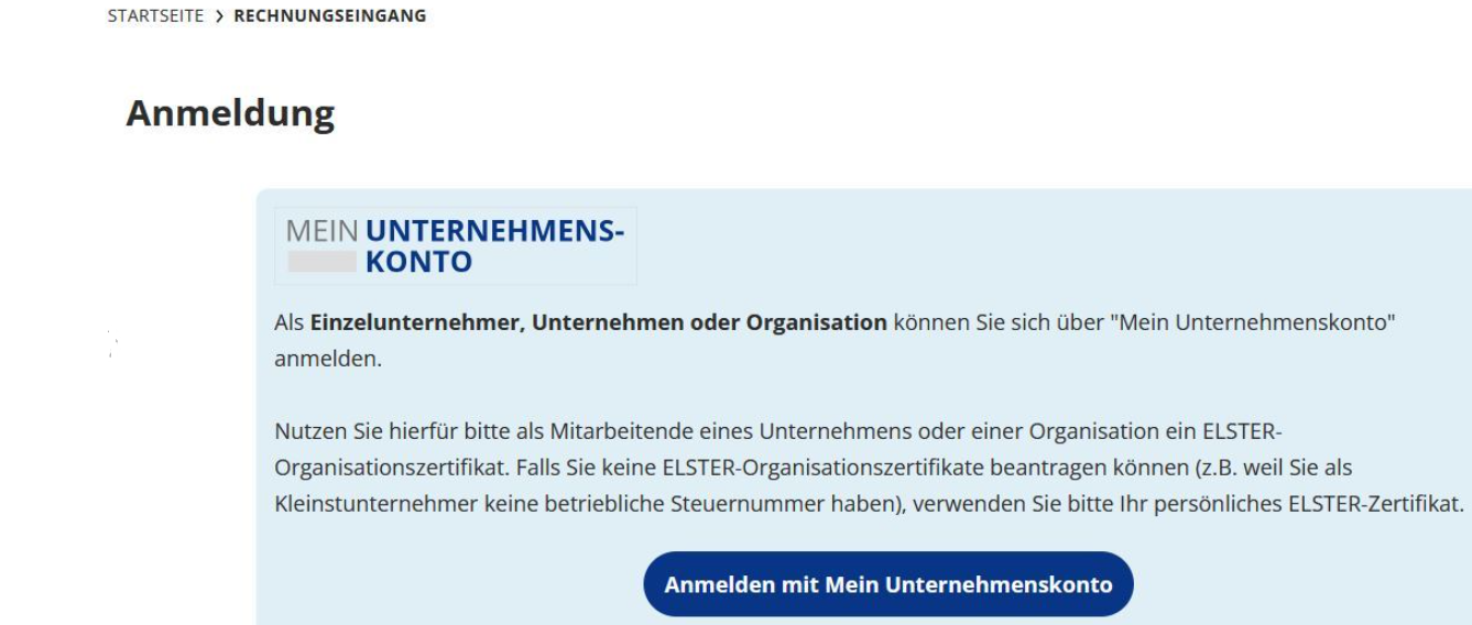 © e-rechnung.service.rlp.de2. Melden Sie sich mit Ihrem "Mein Unternehmenskonto" beim Zentralen E-Rechnungseingang (ZRE) RLP an.