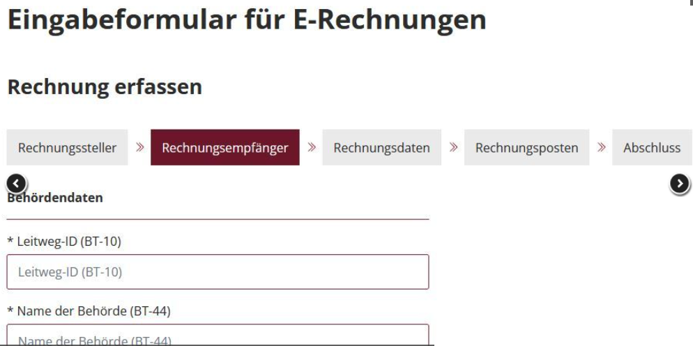 © e-rechnung.service.rlp.de- Jetzt öffnet sich der Rechnungserstellungs-Vorgang.