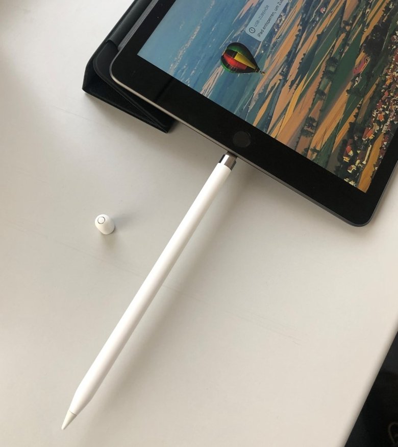 Für die Installation des Apple-Pencil muss dieser mit dem iPAD verbunden werden. Dazu die Kappe des Stiftes abziehen und mit dem Stecker in die Ladebuchse des iPAD stecken. Dadurch wird zum Einen der Stift geladen und zum Anderen bei der erstmaligen Verbindung die Bluetooth-Kopplung hergestellt.