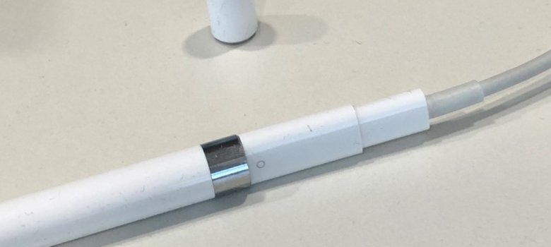 Da hier zwei Stecker aufeinander prallen, benötigen Sie den kleinen Adapter der beim Pencil mit enthalten ist: