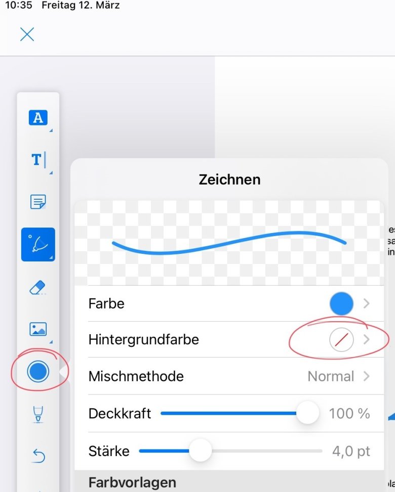 Beim Zeichnen oder Skizzieren verschwindet der darunterliegende Text