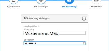 Im nächsten Schritt wird die Benutzerkennung im RIS und das zugehörige Passwort eingegeben.