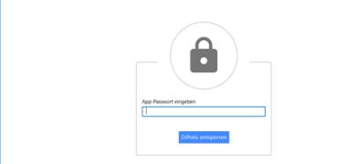 Wenn DIPOLIS nun gestartet wird, muss man immer die APP-Kennung die man am Anfang festgelegt hat, eingeben. Das App-Passwort lässt sich leider nicht speichern. Diese Funktion ist dem Datenschutz geschuldet, damit kein unberechtigter die Daten in DIPOLIS einsehen kann.