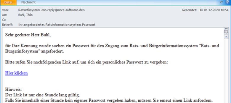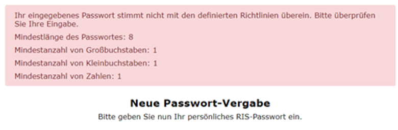 Mit Hilfe des Links gelangen Sie wieder auf die Seite des RIS und können sich nun für Ihre Benutzerkennung ein neues Passwort vergeben.